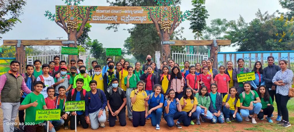 On the occasion of 67th wildlife week a day trail was organised for students of Carmel High school Basaveshwar, Bangalore on 2nd October at Machohalli tree park. Students explored and documented many birds, butterflies and insects and learnt about their inter relationships.