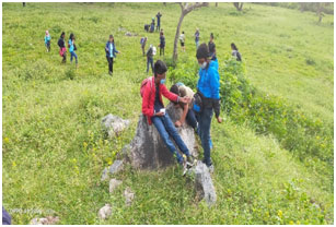 The day ended with reviews and reactions of the day by the children. The last day started with a bang as the youngest one in our group was the first to spot a baby Green Keelback Snake in the grass. This brought in more buzz in the already charged up kids. Students then went to the beautiful hill temple of Himvad Gopala Swamy Betta (popularly known as GS Betta). The sudden change of weather and drop in temperature on top surprised the children. The breath taking 360-degree view of the forest around the hill was mesmerizing. At this great height students saw Elephants, Gaurs, and Sambar Deer. There were more questions and doubts on this and the answers were obvious advantage of these animals in adapting to their surroundings and habitat.