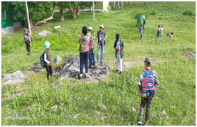 Early afternoon was filled with the excitement to locate and watch the lesser-known bugs and insects around the campus. This was connected to learning about the role of grass and small organisms in the ecosystem. This is a beauty of being in nature, the surprises it throws, the way it teaches many things in one scene. The inter-relationships & interactions between various life forms in forest, the alertness and reflexes we need to observe wildlife.